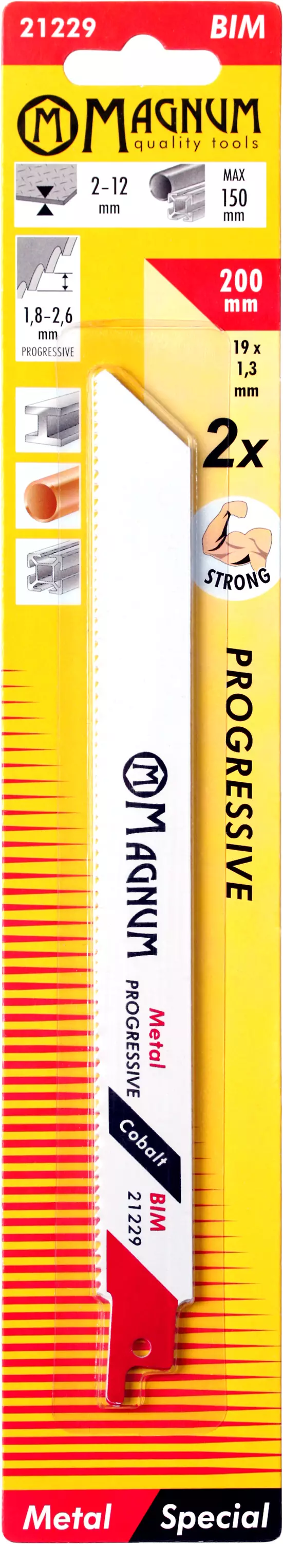Vahva bi-metal-puukkosahanterä, joka helpottaa työskentelyä raskaassa käytössä, kuten esim. purkutöissä. Progressiivinen hammastiheys mahdollistaa työskentelyn vaihtelevilla materiaaleilla sekä vahvuuksilla. Terän rakenne kestää huomattavasti paremmin vääntymistä ja iskuja rikkoutumatta. Hammastuksen M42 HSS-teräs takaa pitkän käyttöiän sekä hyvän suorituskyvyn vaativillakin materiaaleilla. Sopii metallilevyille, putkille ja profiileille sekä naulaiselle puulle. Sahattavat materiaalit: Teräs, alumiini, muovi, puu jne.