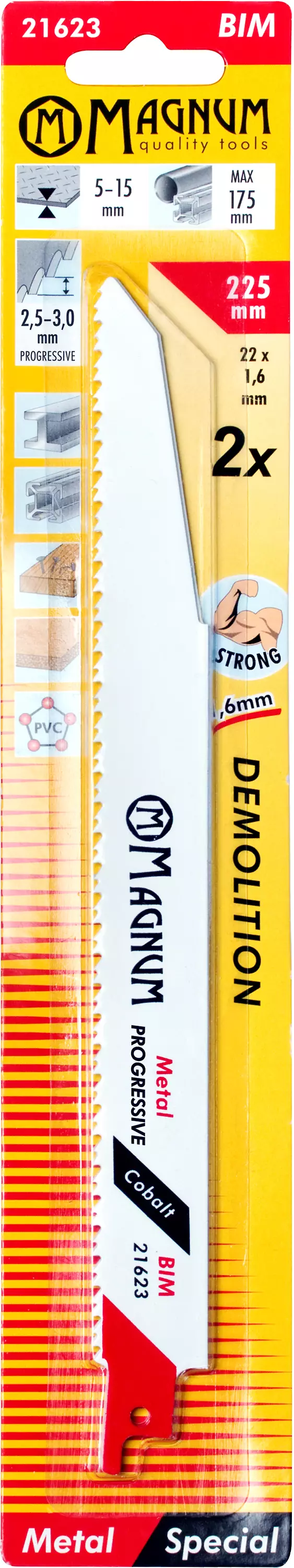 Erityisen vahva bi-metal-puukkosahanterä, joka helpottaa työskentelyä raskaassa käytössä, kuten esim. purku- ja pelastustöissä. Todella jäykkä ja leveä runko yhdistettynä agressiiviseen hammastukseen. Terän rakenne kestää huomattavasti paremmin vääntymistä ja iskuja rikkoutumatta. Hammastuksen M42 HSS-teräs takaa pitkän käyttöiän sekä hyvän suorituskyvyn vaativillakin materiaaleilla. Sahattavat materiaalit: Teräs, alumiini, muovi, puu jne.