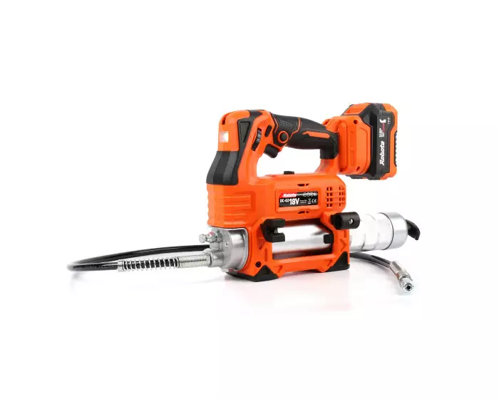 Robota DC-G218V on laadukas ja tehokas 18 V akkukäyttöinen rasvaprässi ammatti- ja harrastekäyttöön. Jopa 690 barin maksimipaine ja johdoton käyttö tekevät voitelusta nopeaa, siistiä ja vaivatonta myös vaativissa kohteissa, kuten maatalouskoneissa, teollisuudessa ja raskaassa kalustossa.
