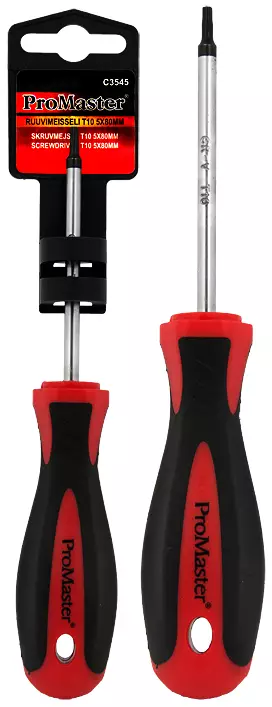 ProMaster -materiaali kromi-vanadium -terästä-koko T10 5x80 mm-muotoiltu 2-komponentti kahva-magnetisoitu kärki-kahvassa ripustusreikä-IP-ripustinpakkaus-takuu 1 vuosi