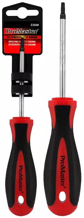 ProMaster -materiaali kromi-vanadium -terästä-koko T15 5x80 mm-muotoiltu 2-komponentti kahva-magnetisoitu kärki-kahvassa ripustusreikä-IP-ripustinpakkaus-takuu 1 vuosi