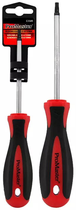 ProMaster -materiaali kromi-vanadium -terästä-koko T25 6x100 mm-muotoiltu 2-komponentti kahva-magnetisoitu kärki-kahvassa ripustusreikä-IP-ripustinpakkaus-takuu 1 vuosi