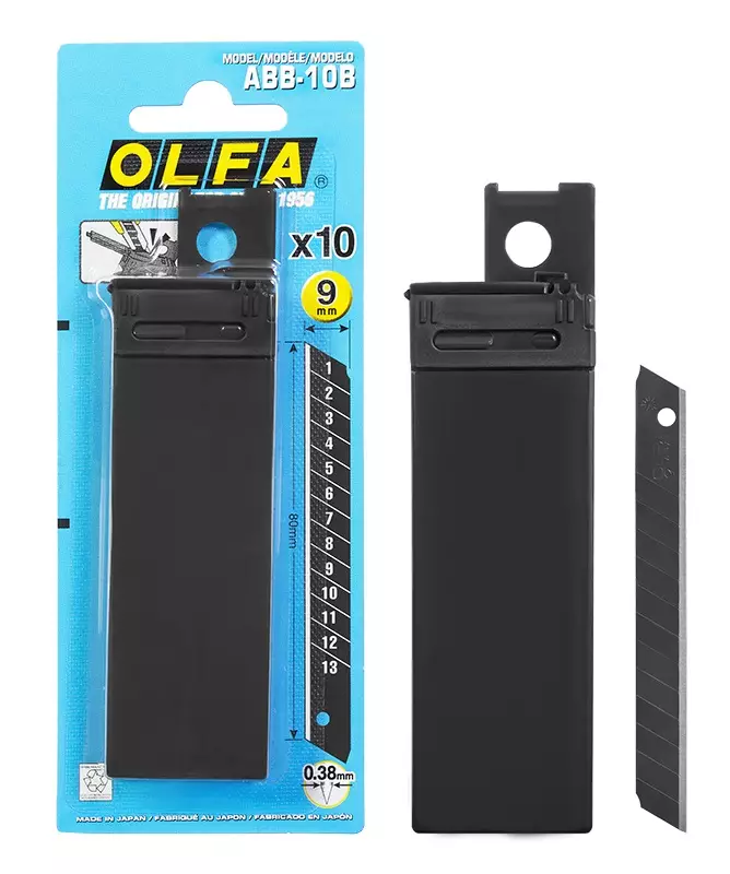 Olfa MADE IN JAPAN -sopii mm. SVR-1 ja 180 veitsille -10 erikoisterävää varaterää -terän leveys 9 mm -muovipakkaus
