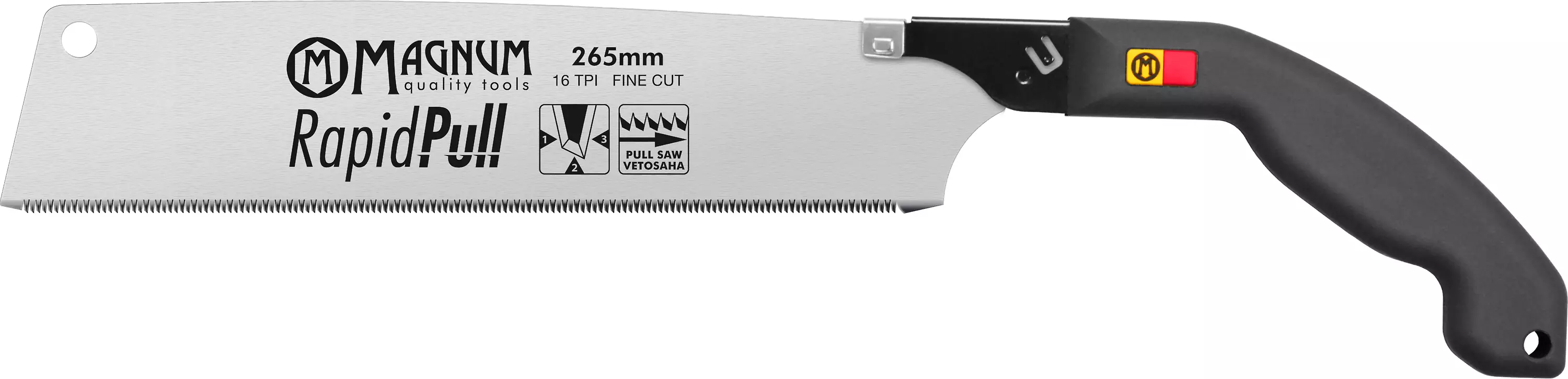 Vetosaha, joka tekee siistin sahausjäljen nopeammin ja kevyemmin kuin perinteinen työntämällä leikkaava saha. Tasaisella ja ohuella terällä on myös mahdollista sahata pintaa pitkin. Ergonomisesti muotoiltu kädensija pitoa parantavalla kumipinnoitteella.