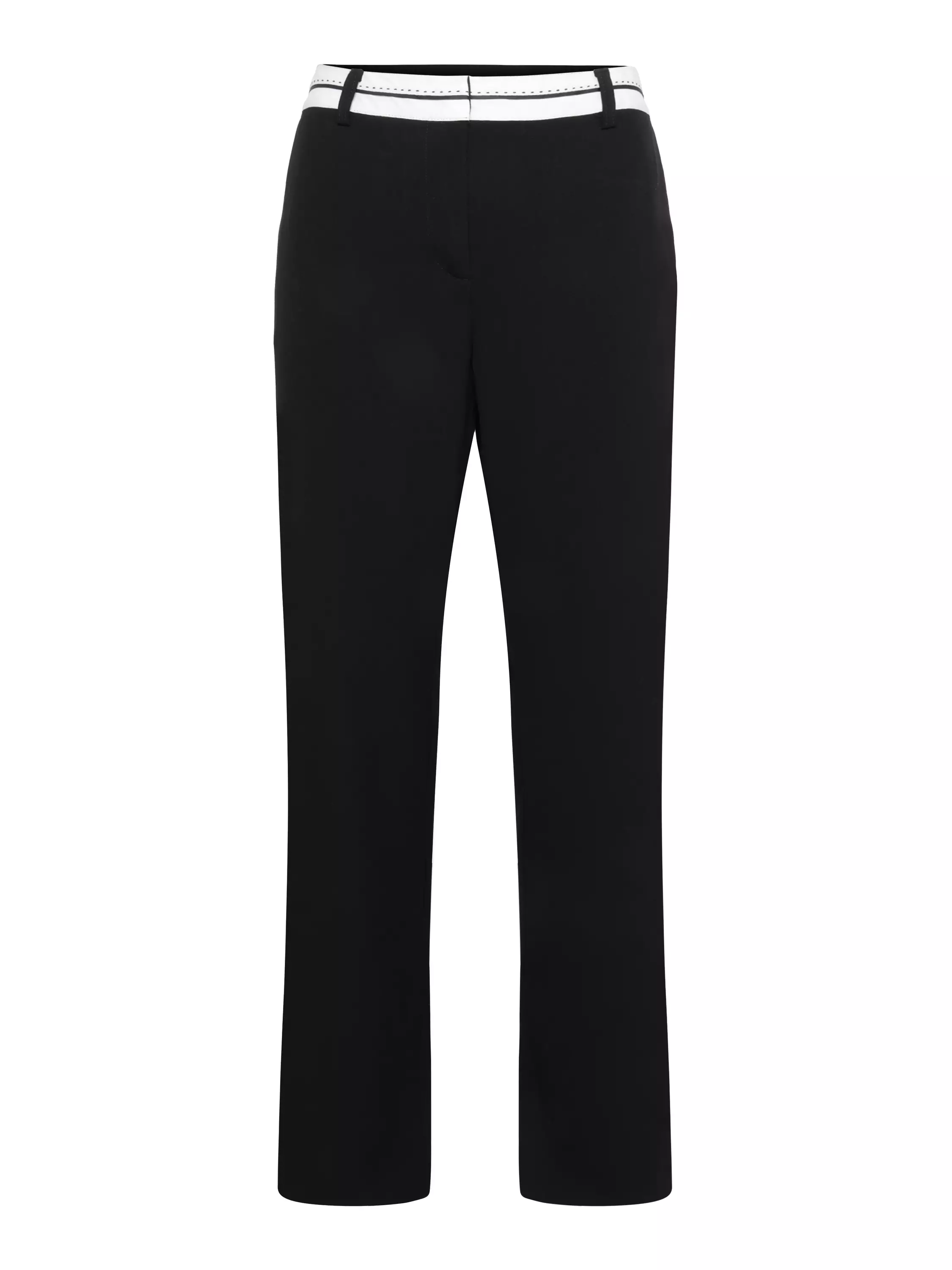 218099 Housuissa on suora leveä lahje Valetaskut takana Vuötärönauha valkoinen jossa musta koristetikkaus Vetoketju ja vyölenkit 63% polyesteri 32% viskoosi 5% elastaani Pesu 30°c... Lue lisää
