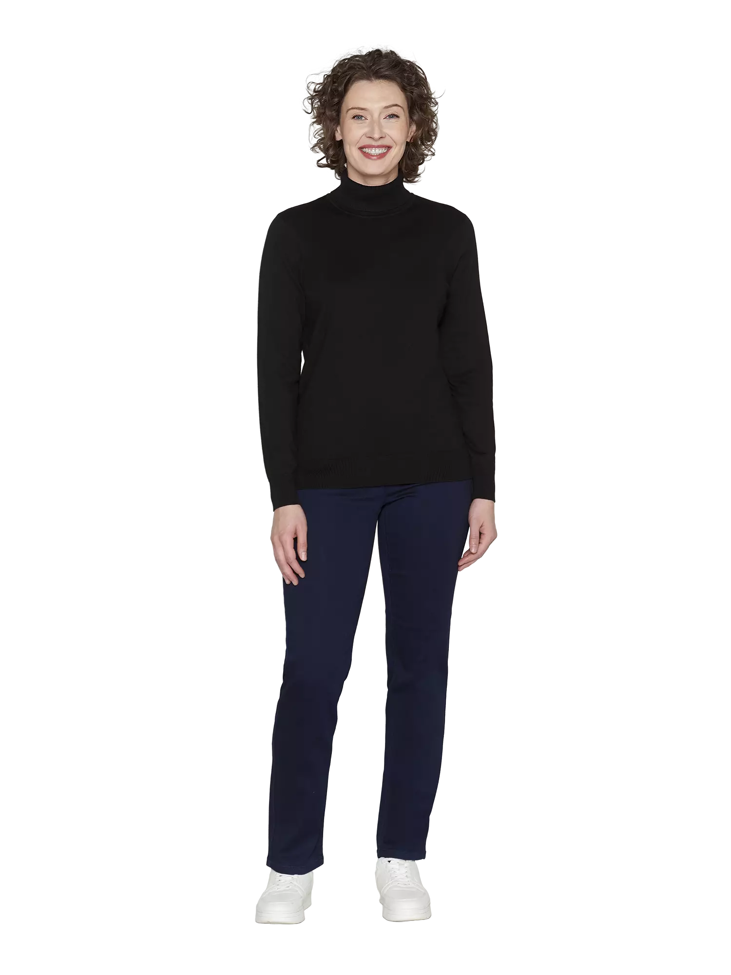 Naisten korkeakauluksinen neulepoolo 75% viskoosi 25% polyesteri Pesu 30° Silitys** Kuivausrumpu kielletty Tasokuivaus