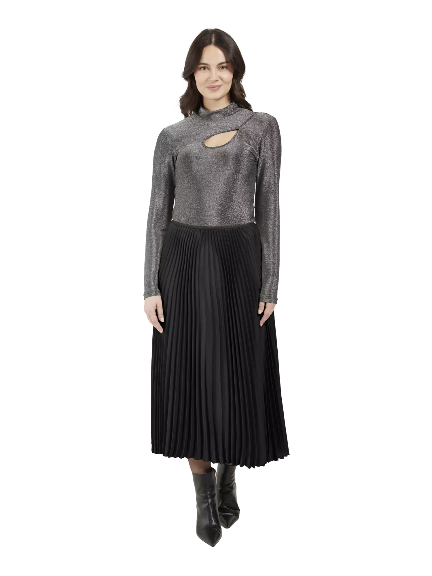 218052 Pitkä pliseeratu hame jossa kuminauhavyötärö Halkiot molemmissa sivusaumoissa 100% polyesteri Pesu 30°c