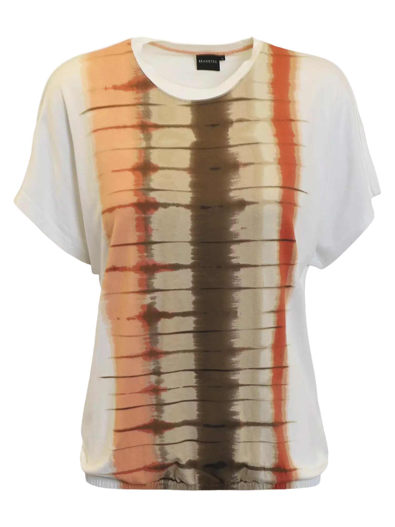Naisten valkoinen T-paita jossa punainen loimuprintti edessä