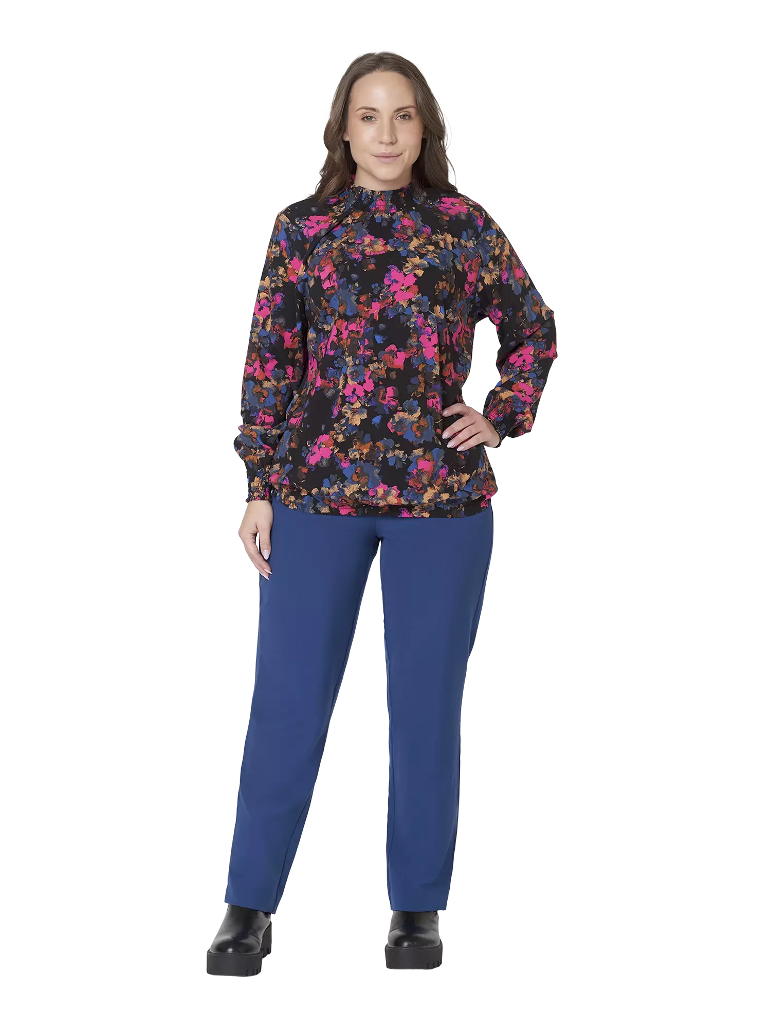 217875 97% viskoosia 3% elastaania Pesu 30° Kuminauharypytys kaula-aukossa, hiansuissa ja helmassa Värikäs kuosi