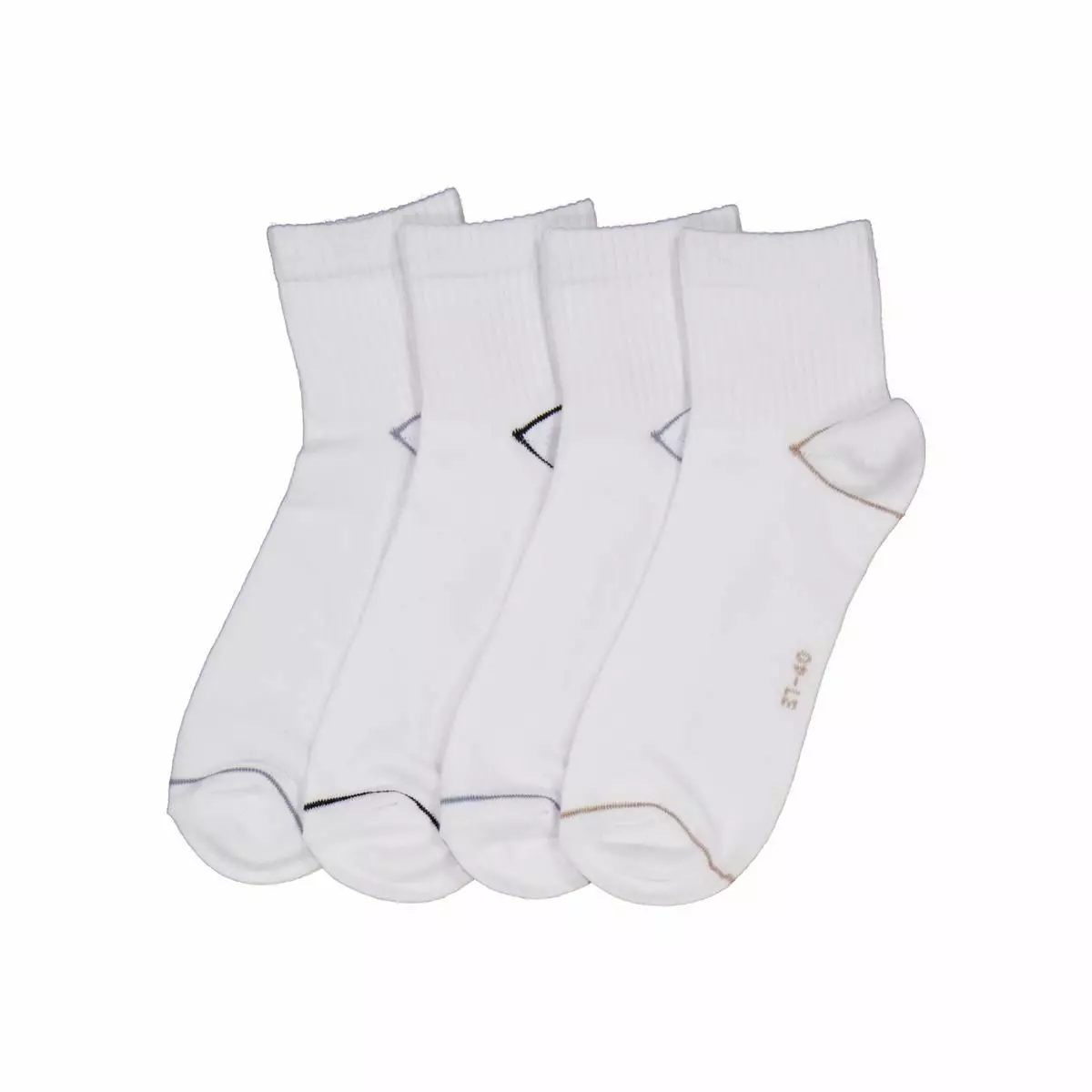 345065-251 Naisten Retro sporttisukat koko 37-40 4kpl/pkt Valkoinen 75% puuvillaa 22% polyesteriä 3% elastaania Pesu 40°c Ei kuivausrumpuun Silitys kielletty