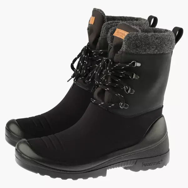 Fleecekauluksinen malli, reippaaseen ulkoiluun. Varsiosa on helppo kiristää nauhoilla, joten se pysyy jalassa. Reilu mitoitus. Vasrsiosa on vettähylkivää nahkaa,teddyvuori. Heijastavat nauhat.... Lue lisää