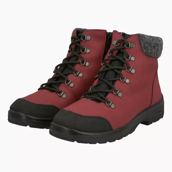 Päällinen mikrokuitua,lisäksi PU-pinnoitettu haljasvahvike kengän kärjessä ja pehmeä kaukus varren yläosassa. Nauhakiinnitys ja sisäsivulla vetoketju. -30°c