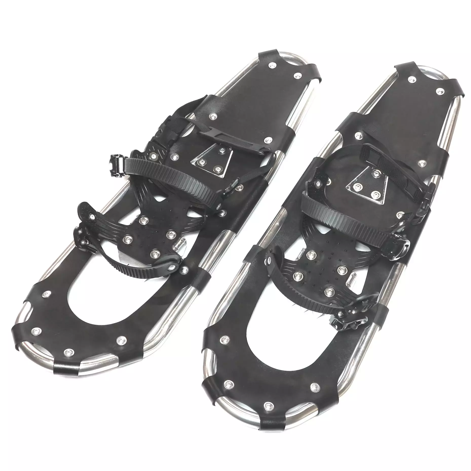 Kevyellä ja tukevalla alumiinirungolla ja nopeilla siteillä lumikengät joilla ulkoilu talvisissa maisemissa käy leppoisasti.