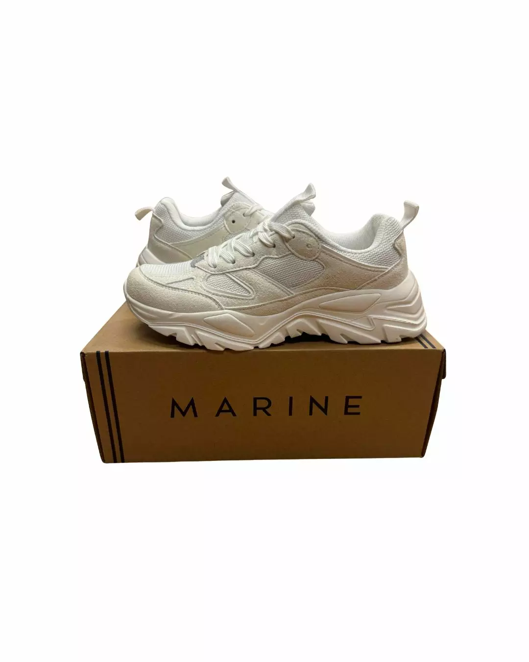 Tyylikkäät ja monikäyttöiset Marine vapaa-ajan kengät ovat täydellinen valinta arkeen. Ajaton valkoinen väri yhdistyy moderniin, sporttiseen muotoiluun, joka sopii niin rentoon pukeutumiseen kuin aktiiviseen menoon. Kengän hengittävä päällinen takaa miellyttävän käyttökokemuksen koko päiväksi, ja pehmustettu sisäpohja lisää askelmukavuutta. Tukeva, kuvioitu ulkopohja tarjoaa hyvän pidon eri alustoilla, joten kengät sopivat erinomaisesti niin kaupungille kuin kevyille ulkoiluille.