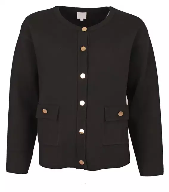 Naisten neulejakku O-aukko Edessä kullanvärinen napitus Sivuilla valeläppätaskut 85% viskoosia 15% nailonia Pesu 30° väljässä vedessä silitys ** Kuivausrumpu kielletty M25604... Lue lisää