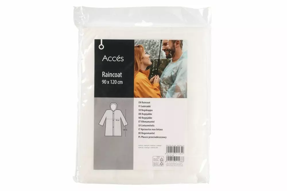 Hupullinen pitkä sadetakki on valmistettu kestävästä EVA-materiaalista. Nappikiinnitys.