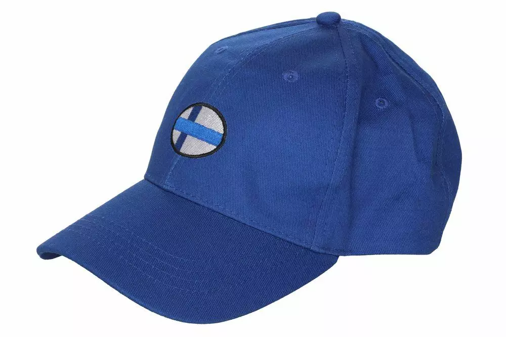 Lippalakki brodeeratulla Suomen lipulla. Käsinpesu.