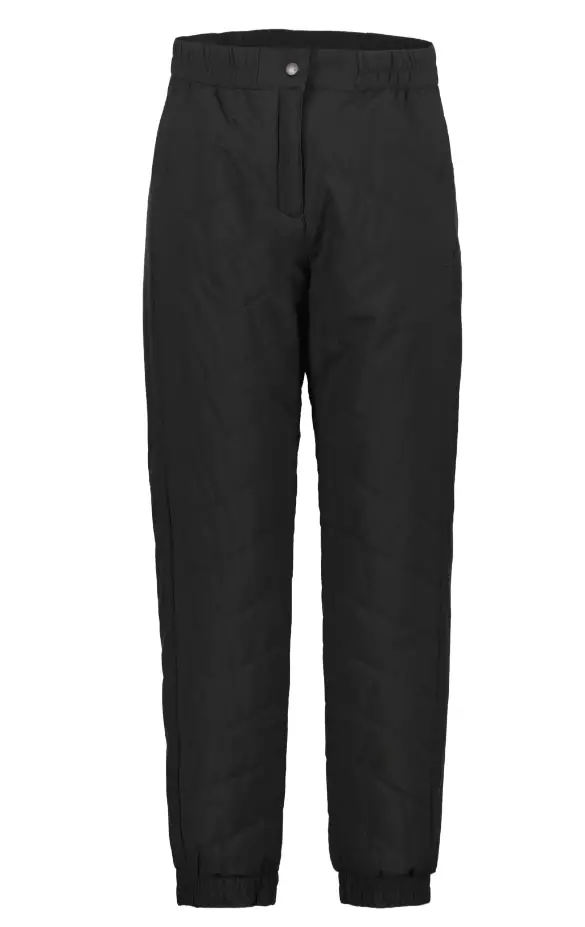 Naisten toppahousut Vinotikkaus mustalla Vyötäröllä kuminauhakiristys Edessä vetoketju Sivuilla vetoketjutaskut Lahkeissa resorit 100% polyesteri Pesu 30° ilman huuhteluainetta kuivausrumpu... Lue lisää