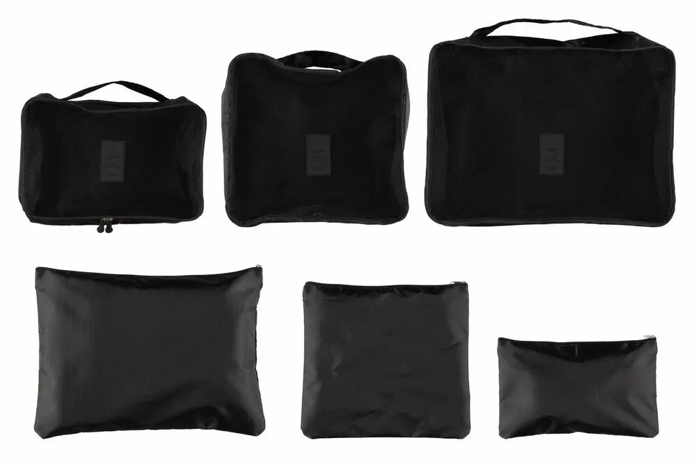 Pakkaamisen pikkuapurit! Matkalaukun organisoijan avulla helpotat pakkaamista ja tavarat pysyvät laukussa järjestyksessä. Settiin kuulu kuusi erikokoista vetoketjulla suljettavaa laukkua. Koot: 40 x 30 x 13 cm, 30 x 28 x 13 cm, 30 x 21 x 13 cm, 35 x 27 cm, 27 x 25 cm ja 26 x 16 cm.