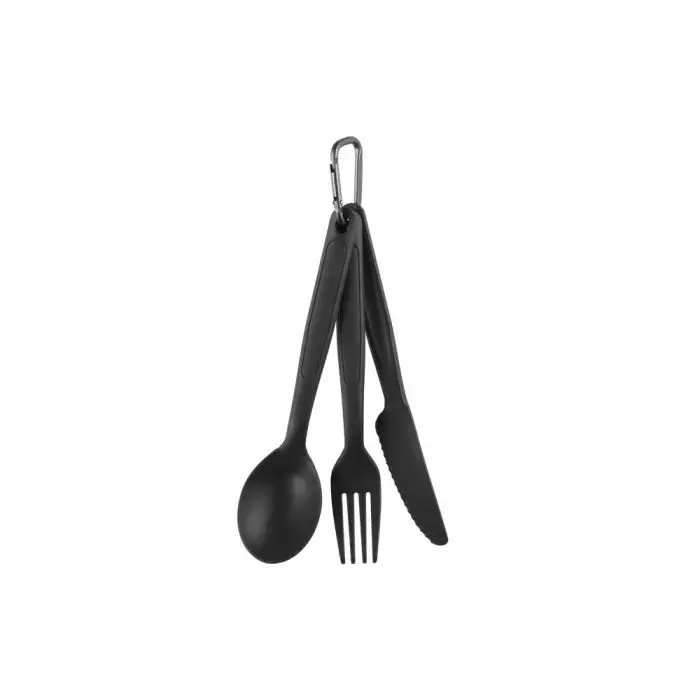 Kevyet retkiaterimet karabiinihakasessa jolla ne on helppo kiinnittää esimerkiksi rinkkaan ja ne pysyvät tallessa missä tahansa.