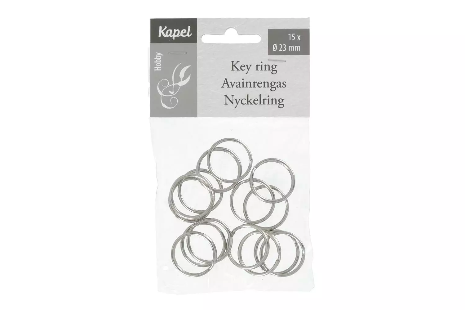 Metallinen avainrengas omien persoonallisten avaimenperien valmistamiseen. Halkaisija 23 mm.