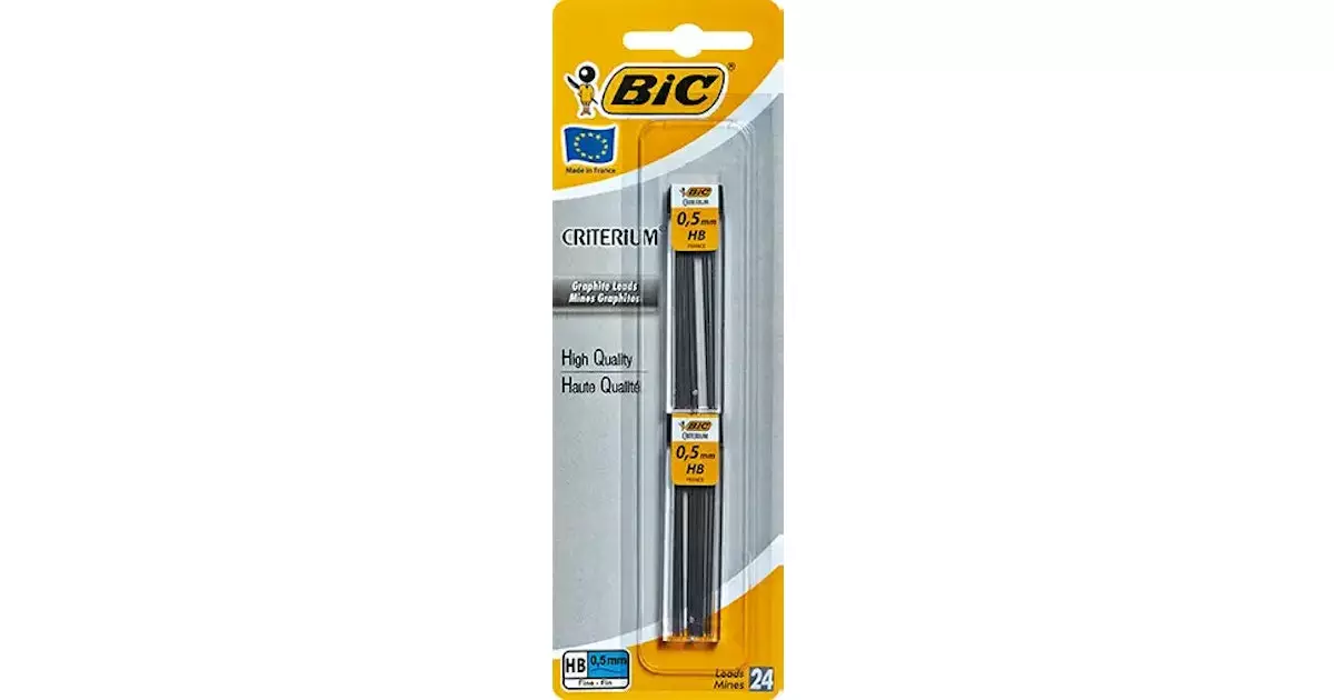 Bic hb 0,5mm irtolyijyt lyijytäytekyniin. Pakkauksessa on 2 tuubia, joissa kussakin 12 kpl 0,5mm HB-lyijyä.