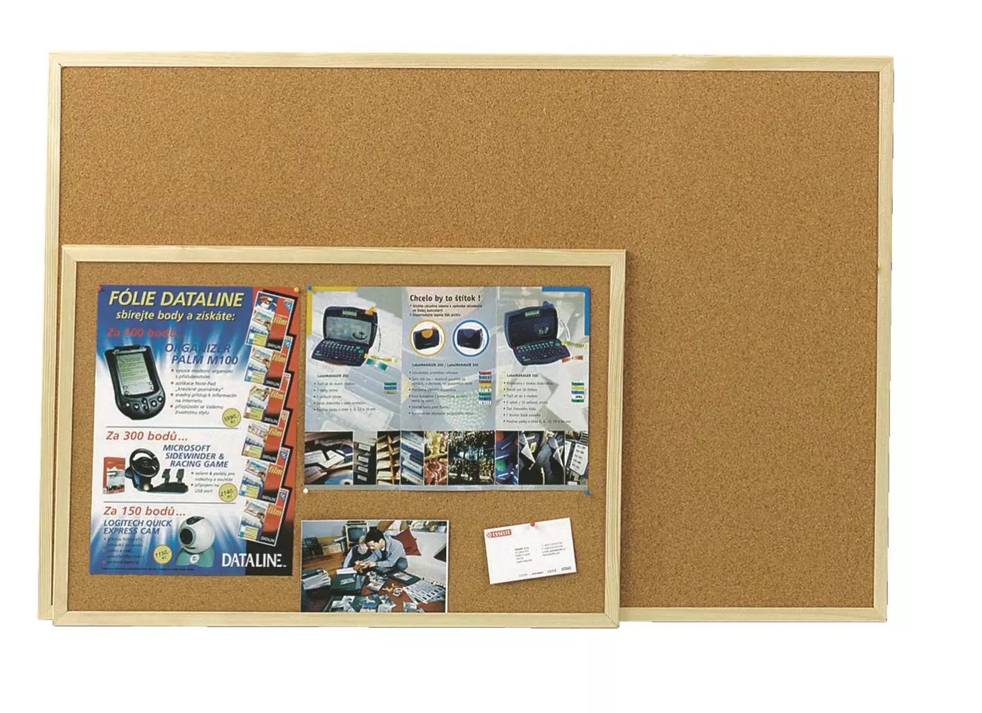 Molemmin puolin karkea korkkipinta. Puukehykset, lomitetut kulmat. Mukana 6 nastaa ja kiinnityskoukut. Mitat mm: 390x590