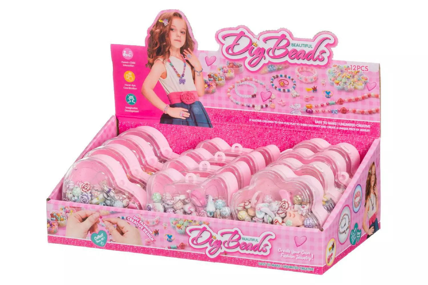 Rasia sisältää hurmaavia erimuotoisia muovihelmiä, joista voi valmistaa ihania koruja. Ikäsuositus 3+.