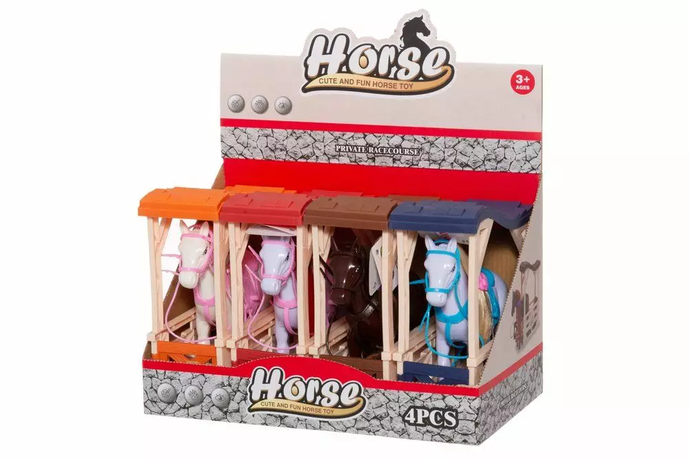 Leikkisetissä suloinen hevonen ja oma pieni talli. Tallin koko 7,5 x 20 x 20 cm. Ikäsuositus 3+.