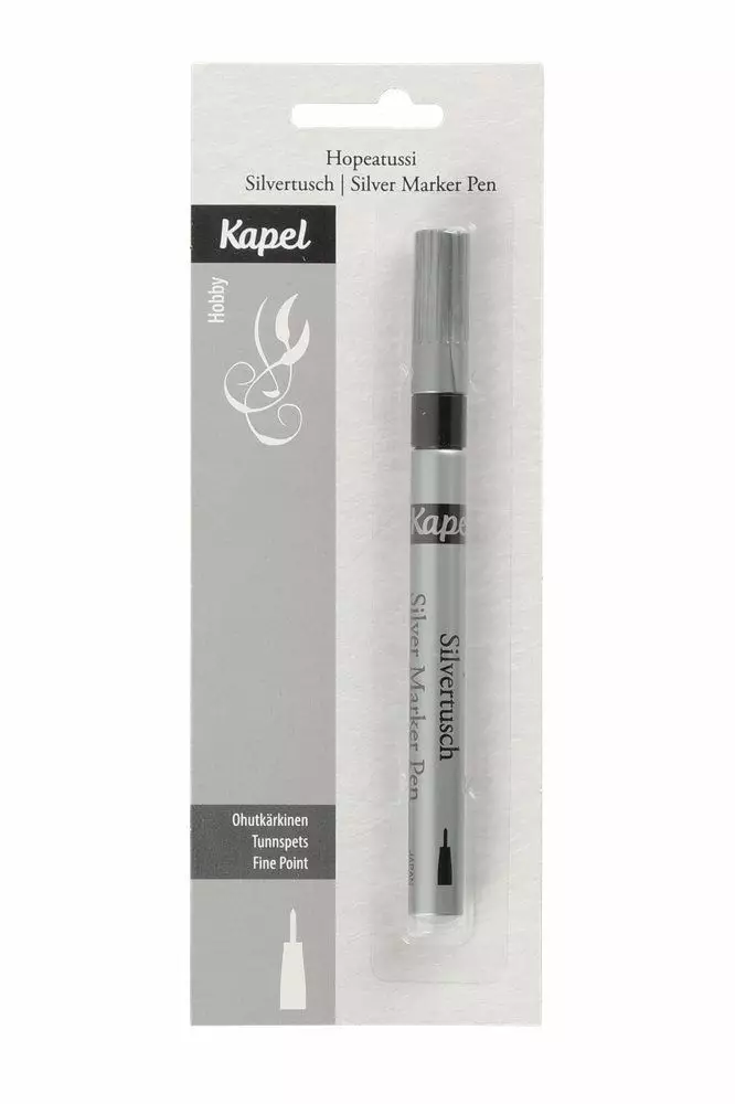 Vedenkestävä hopeatussi kaikenlaiseen askarteluun ja koristeluun.