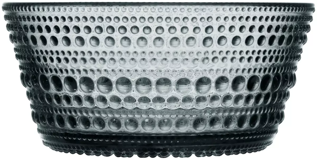 Kastehelmi-sarjan pisaramainen kuviointi on saanut innoituksensa aamukasteesta. 23 cl:n kulho on juuri sopiva aamiaiselle, jälkiruoille tai pienille annoksille. Uusi vaaleanharmaa sävy korostaa lasin hienostunutta pintaa. Valmistettu Iittalan lasitehtaalla – kaunis arjen käyttöesine.