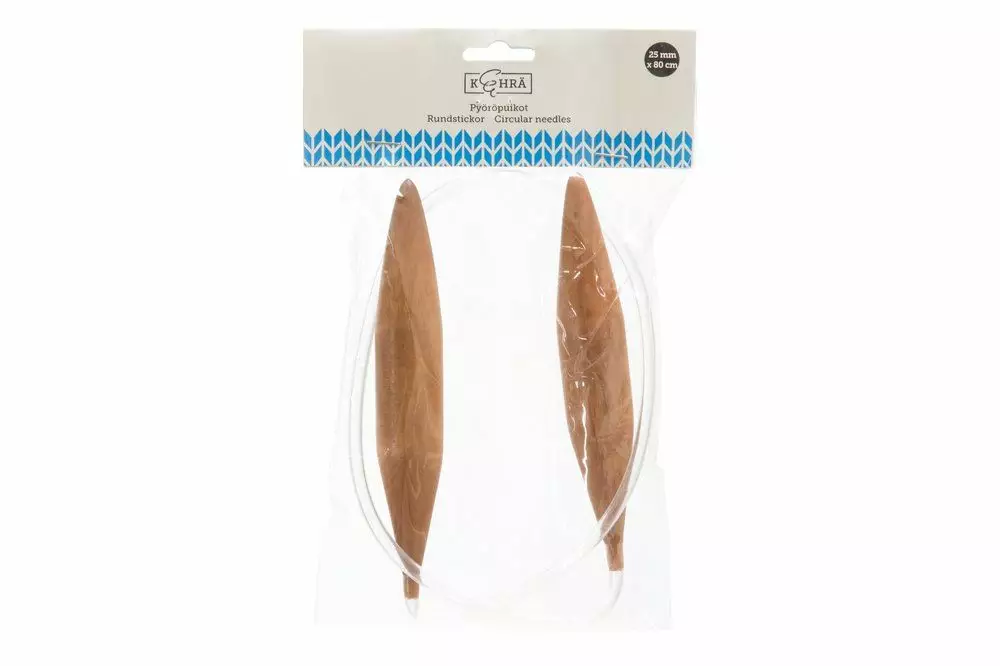 25 mm. Kokonaispituus 80 cm. Soveltuu mm. paksun trikookuteen tai muiden paksujen lankojen neulomiseen.