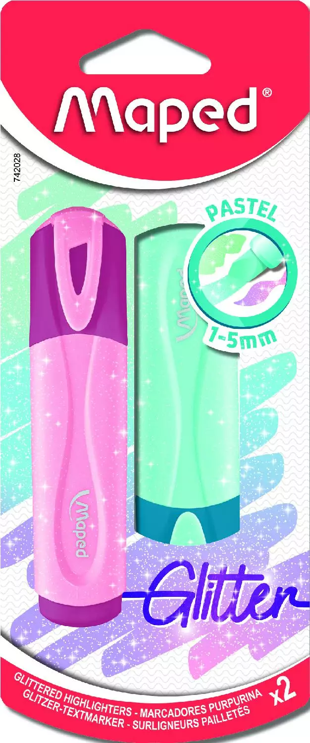 Erinomaiset ja kirkasväriset Maped Fluo Peps korostuskynät nyt pastelliväreissä. Korttipakkauksessa 2 kpl vaihtelevia värejä, vaihtoehtoina vihreä, turkoosi, violetti ja pinkki.
