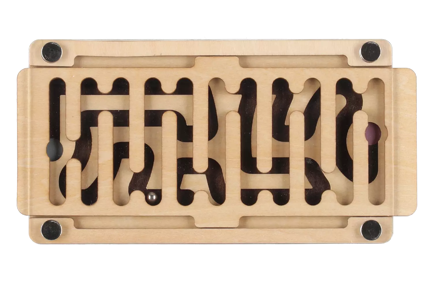 Jännittävä labyrinttipeli. Kuljeta kuulaa labyrinttia pitkin pelilaudan toiseen päähän. Vanerista valmistettu peli on kestävä ja kompaktin kokoinen myös matkalle. Ikäsuositus 6+.