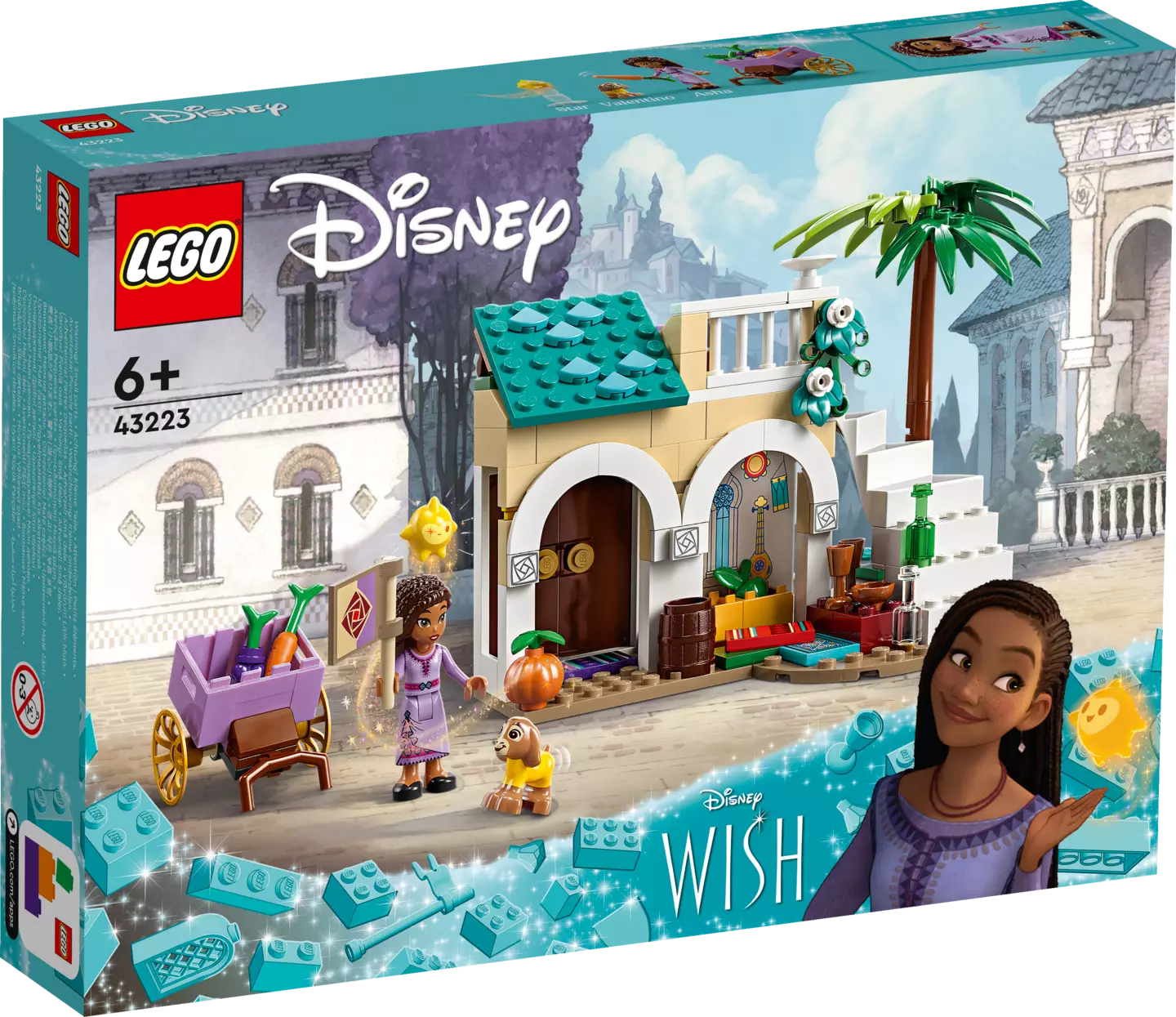 Lapset ja kaikki muutkin yli 6-vuotiaat Disney-fanit uskovat tähden taikaan uppoutuessaan LEGO® | Disney Asha Rosas-kaupungissa (43223) rakennussetin maailmaan, joka pohjautuu Walt Disney Animation Studiosin uutuuselokuvaan Toive. Setissä on torin reunan talo, jossa on portaat ja parveke, takahuone pöytineen, rattaat ja LEGO | Disney mininukkehahmo ja 2 LEGO | Disney hahmoa. Setti vahvistaa lasten itseluottamusta ja innostaa mielikuvitukselliseen tarinointiin ja leikkeihin. Sen voi myös yhdistää sarjan muihin LEGO | Disney rakennussetteihin (43224 ja 43231, myydään erikseen) laajempiin leikkeihin. Lapset voivat uppoutua helppoon, intuitiiviseen rakenteluelämykseen LEGO Builder sovelluksessa, jossa voi tallentaa settejä, seurata edistymistä sekä zoomata ja kiertää malleja 3D-näkymässä.
