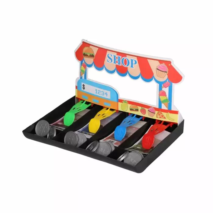 Perusta oma torikoju! Leikkisetissä on kassalipas, jossa on rahaa ja ihastuttavia leikkiruokia. Kauppaleikit ovat suosittuja, hauskoja ja kehittäviä roolileikkejä. Ikäsuositus 3+.