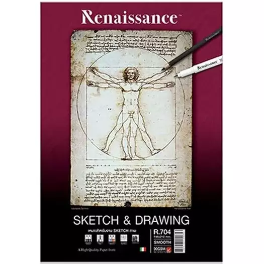 Renaissance luonnos- ja piirustuslehtiö sileäpintaisella luonnonvalkoisella paperilla (90 g). Laadukas italialainen paperi on happovapaata, FSC-sertifioitua ja valmistettu 100 % selluloosasta. Paperi säilyy pitkään, ei homehdu eikä kellastu. Tämä luonnoslehtiö soveltuu erityisesti puuväri-, lyijy- ja kuitukärkikynille sekä liiduille. -A5, 148 x 210 mm -90 g -60 arkkia -luonnonvalkoinen -sileäpintainen -ei viivoja -happovapaa -100 % selluloosa, FSC-sertifioitu -liimattu selkä, lyhyt sivu