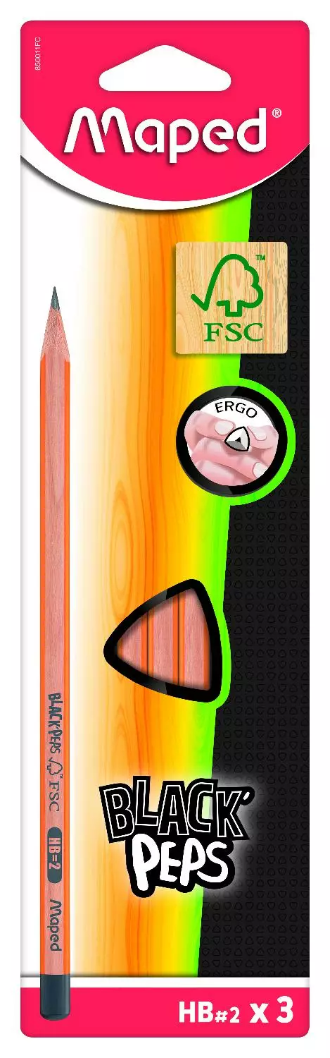 3 kpl korkealaatuisia HB lyijykyniä korttipakkauksessa. Kolmio-muoto takaa paremman otteen kynästä. Valmistettu FSC-sertifioidusta puusta, ja pakkaus on kokonaan kartonkia.