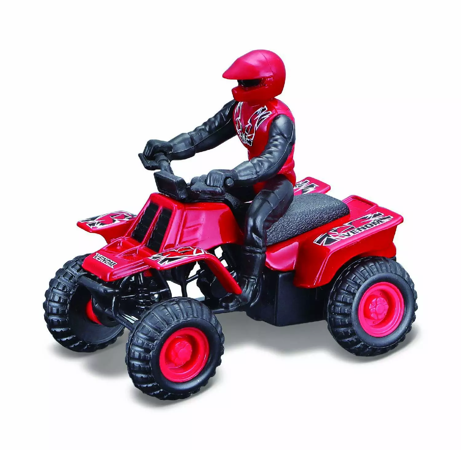 Pull-back -toiminto. Kestävä valumetallirunko. Pehmeät paddle-tyyppiset renkaat. Irrotettava stunttiajaja. Ikäsuositus 3+.