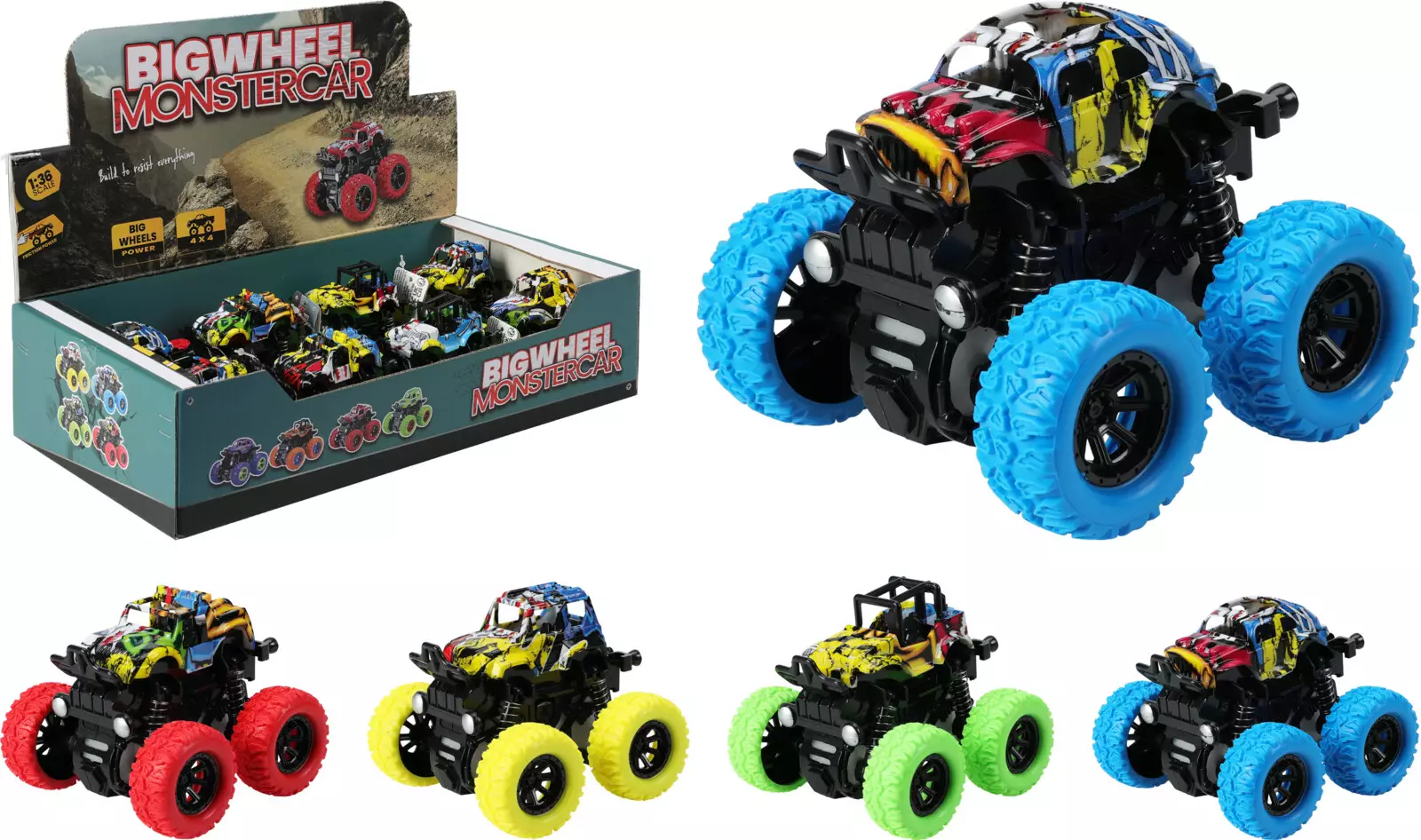 Vauhdikas ja näyttävä monsteriauto, joka on tehty kovaan leikkiin. Isot, kuvioidut renkaat ja korkea runko tekevät autosta täydellisen esteiden ylitykseen ja hurjiin ajoseikkailuihin niin sisällä kuin ulkona.Auto liikkuu kevyesti ja kestää reipasta käsittelyä, mikä tekee siitä loistavan valinnan autoista ja toiminnallisista leikeistä innostuneille lapsille. Eri väri- ja kuosivaihtoehdot tuovat vaihtelua ja lisäävät leikin iloa.