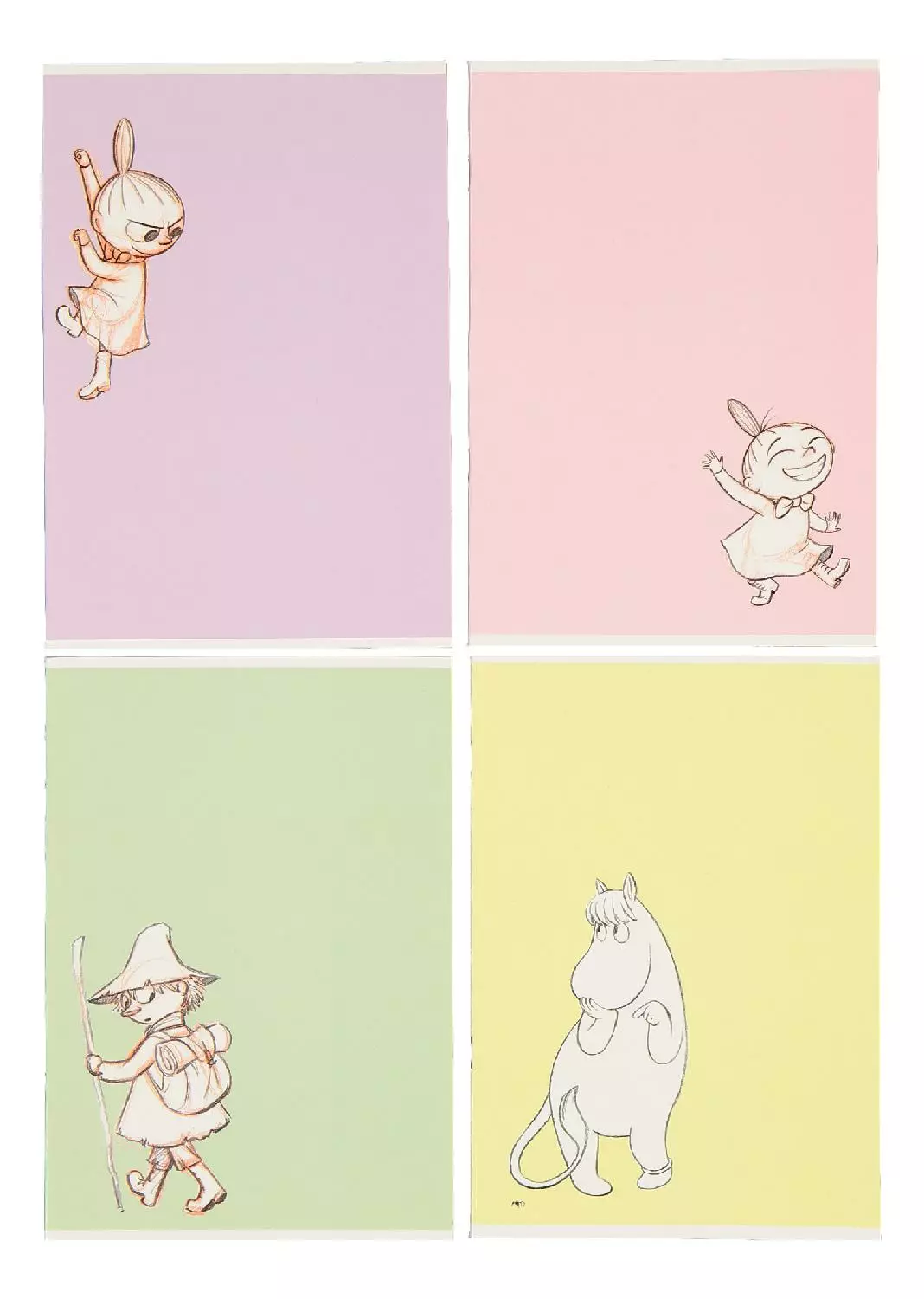 Upeat pastellinsävyiset kannet! Värikäs lajitelma nidottuja Muumi-kouluvihkoja, joissa neljä eri kuvaa. Nidottu vihko A5, 40 sivua 7x7 mm ruuduilla.