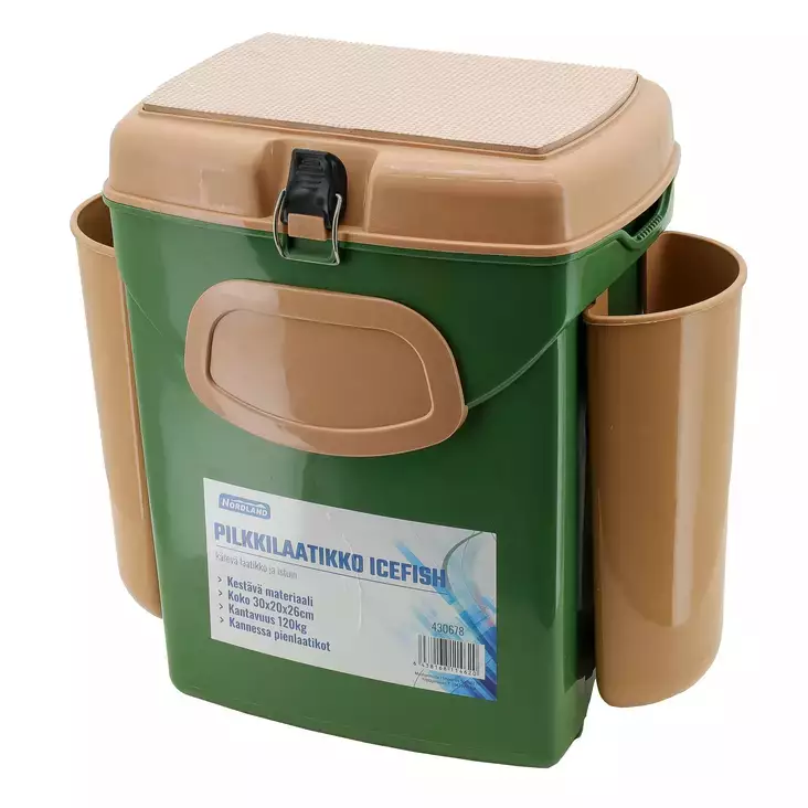 Kestävästä materiaalista valmistettu Icefish-pilkkilaatikko soveltuu erinomaisesti vaihteleviin sääolosuhteisiin ja kulkee helposti mukana pilkkiretkillä, mökillä tai talvikalastuksessa.