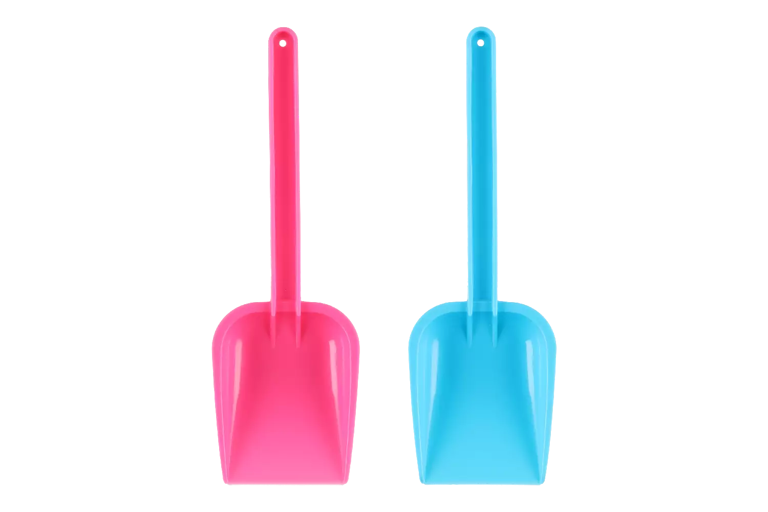 Muovinen hiekkalapio kesän hiekkalaatikko- ja rantaleikkeihin. Pituus 24,5 cm. 2 kpl/pakkaus.