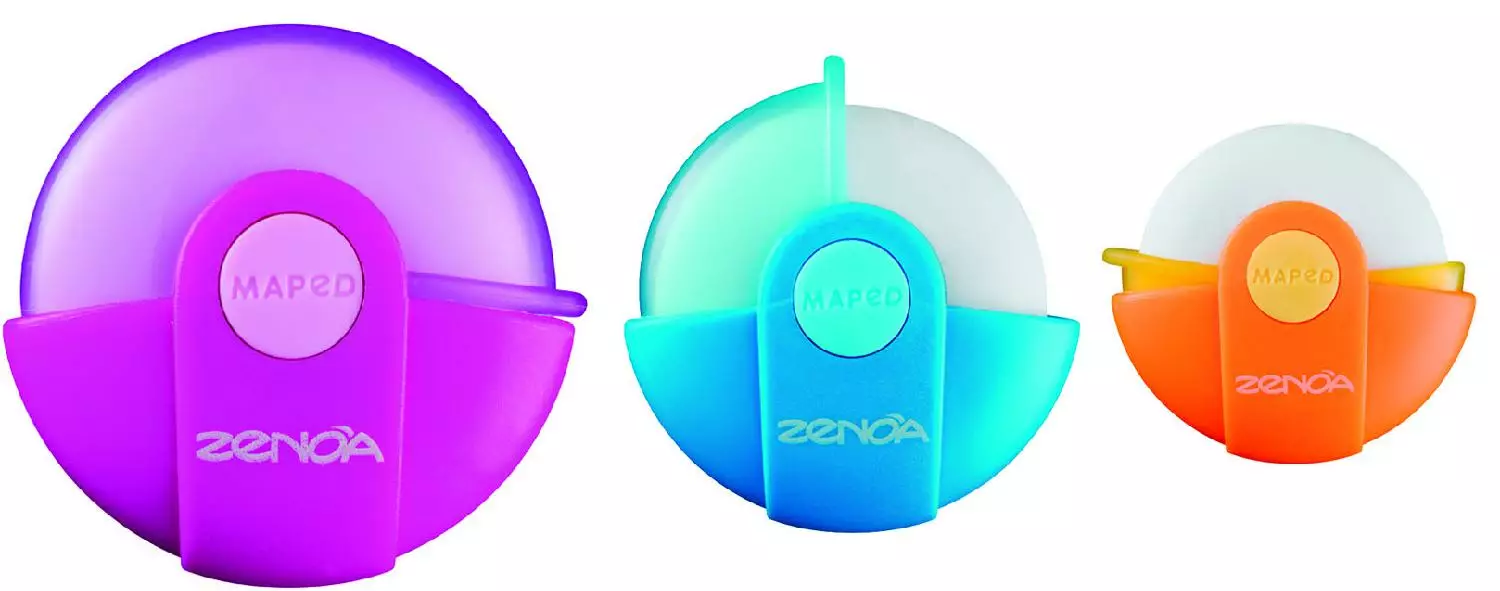 Suosittu koululaispyyhekumi, jossa pyörivä suojakuori. Suojaa kumin kokonaan. Korttipakkaus värilajilelmana. PVC vapaa.