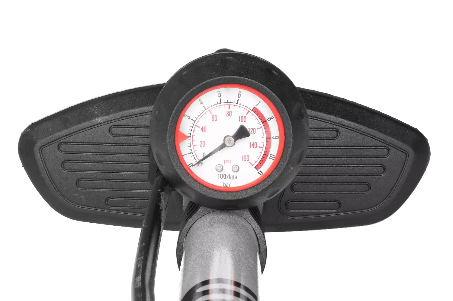 Sopii pyörän- ja autonventtiilille. Integroitu painemittari 12 bar. Lukittava suutin. Pituus 63 cm.