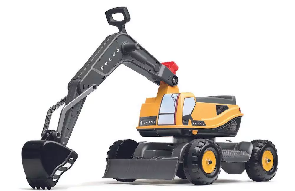 Volvo-kaivinkone – pienille rakentajille. Mikään työ ei ole liian suuri, kun käytössä on tämä aidon näköinen Volvo-kaivinkone! Leikki muuttuu seikkailuksi 360° kääntyvän ohjaamon, avattavan istuimen ja täysin nivelletyn mekaanisen kauhan ansiosta – aivan kuin oikeassa koneessa. Kestävä rakenne ja huolellinen viimeistely takaavat hauskat ja turvalliset leikkihetket. Painoraja 50 kg. Ikäsuositus 3-7 vuotta.