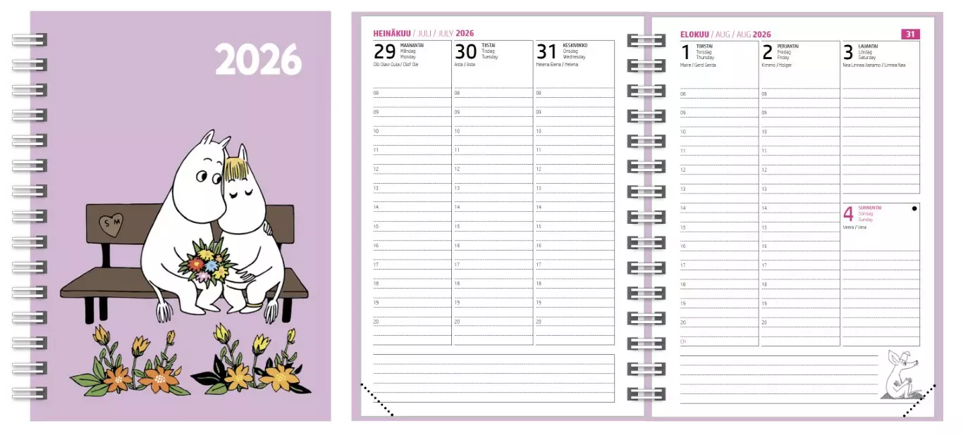 Vuosikalenteri Muumi 2026 A6 Romantic