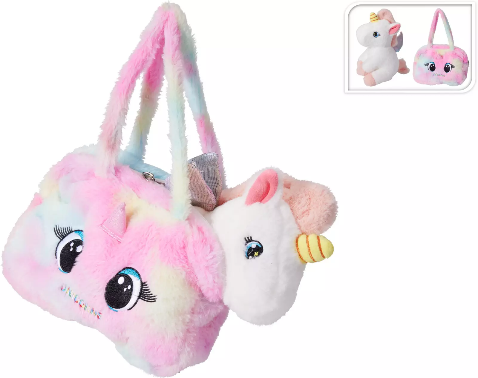 Ihastuttava ja superpehmeä yksisarvisaiheinen laukku, joka sopii täydellisesti lasten leikkeihin ja pieniin seikkailuihin. Laukku toimii sekä suloisena asusteena että pienenä säilytystilana leluille, aarteille tai muille tärkeille tavaroille.Pehmeä materiaali, pastellivärit ja söpö yksisarvisdesign tekevät laukusta lasten suosikin. Kevyt rakenne ja kantokahvat sopivat hyvin pienten käsien käyttöön.